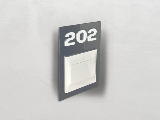 Modern Silver/White Switch Frame with Door Number - Personalized Apartment Number Sign - Room Number Signage