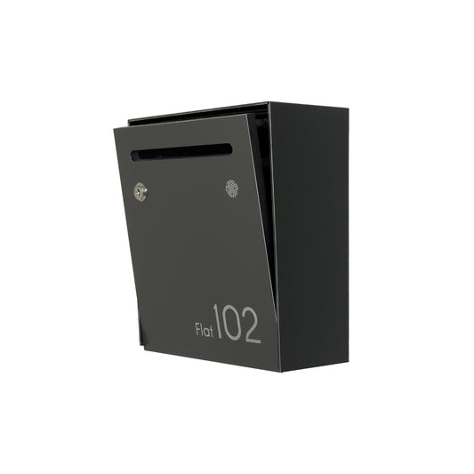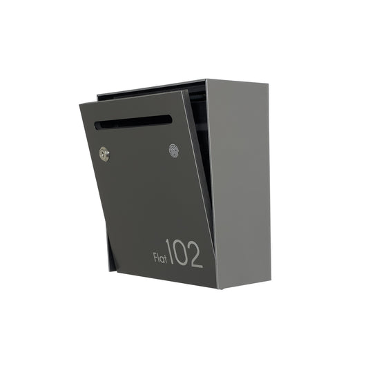 Small Apartment Mailbox - Minimalist Metallic Gray/Black Wall Mounted Modern Stylish Letterbox with Engraved Personalization