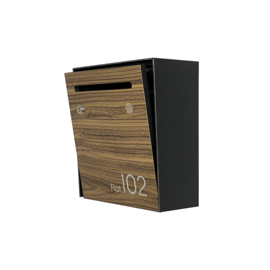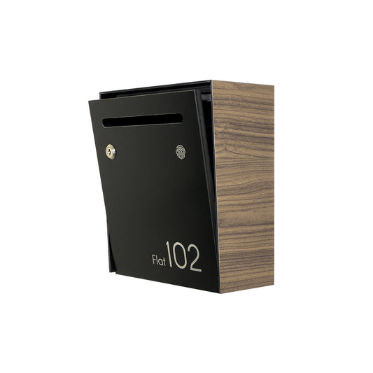 Small Apartment Mailbox - Minimalist Walnut/Black Wall Mounted Modern Stylish Letterbox with Engraved Personalization