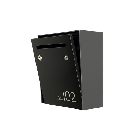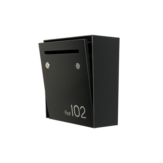 Small Apartment Mailbox - Minimalist Black Wall Mounted Modern Stylish Letterbox with Engraved Personalization