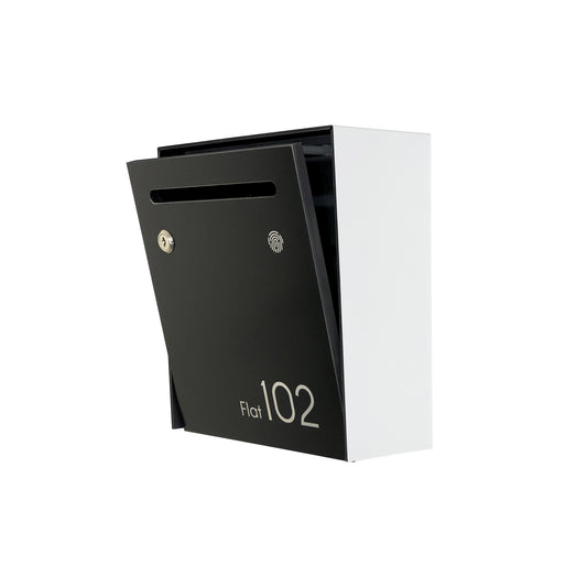 Small Apartment Mailbox - Minimalist Black/White Wall Mounted Modern Stylish Letterbox with Engraved Personalization