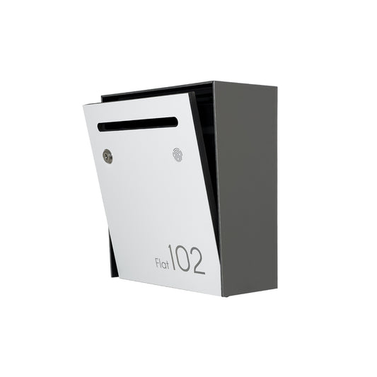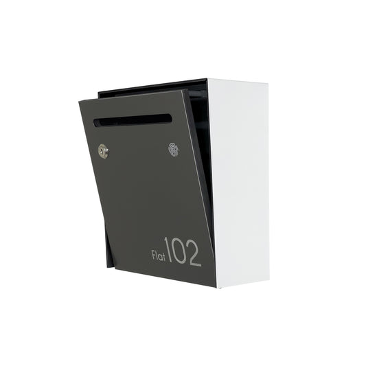 Small Apartment Mailbox - Minimalist Metallic Gray/White Wall Mounted Modern Stylish Letterbox with Engraved Personalization