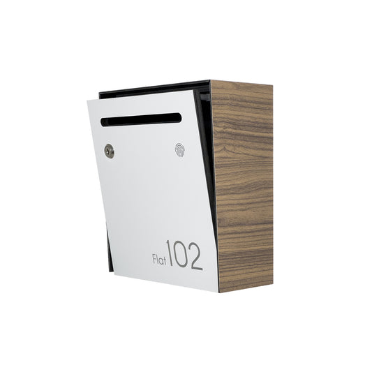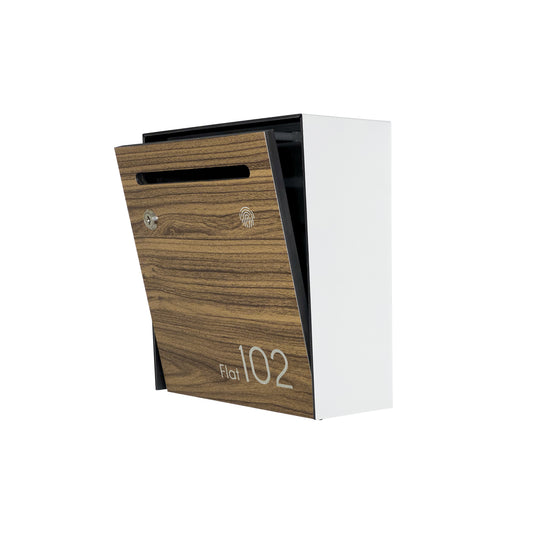 Small Apartment Mailbox - Minimalist Walnut/White Wall Mounted Modern Stylish Letterbox with Engraved Personalization