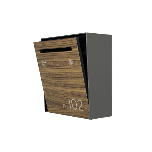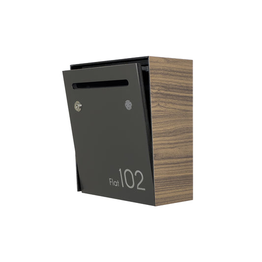 Small Apartment Mailbox - Minimalist Metallic Gray/Walnut Wall Mounted Modern Stylish Letterbox with Engraved Personalization