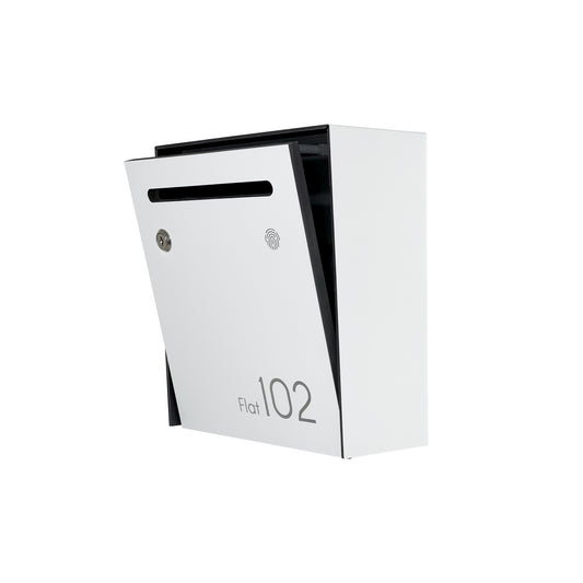 Small Apartment Mailbox - Minimalist White Wall Mounted Modern Stylish Letterbox with Engraved Personalization