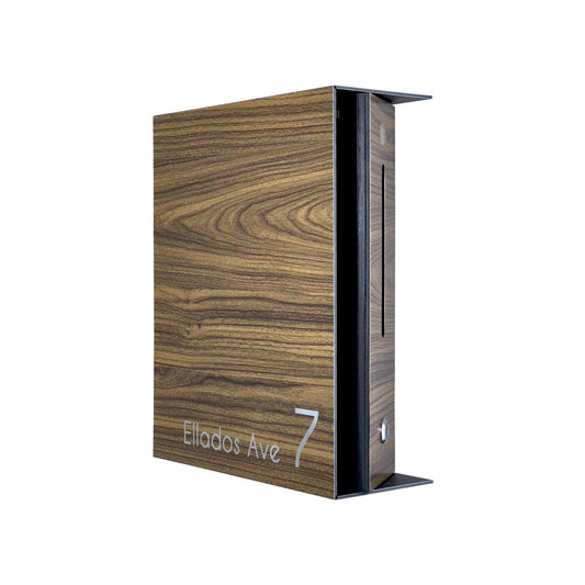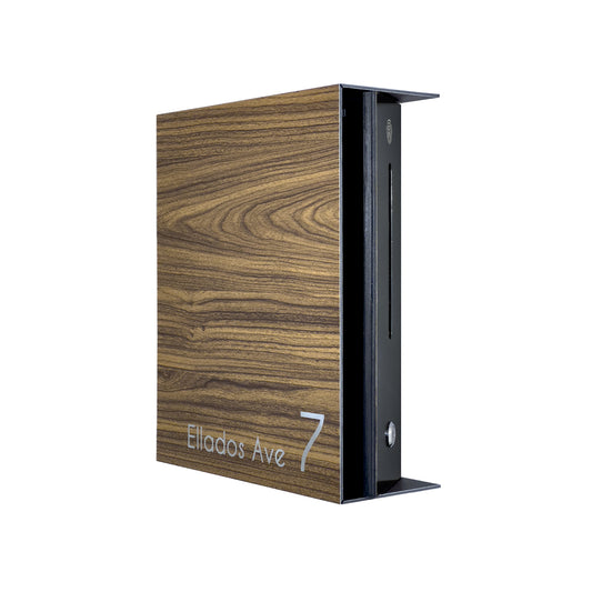 Walnut/Black Minimalist Mailbox - Modern Stylish Letterbox for Home and Office with Engraved Personalization