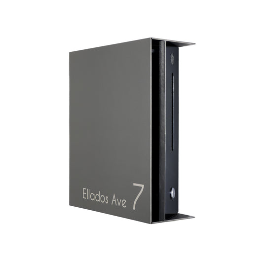 Metallic Gray/Black Minimalist Mailbox - Modern Stylish Letterbox for Home and Office with Engraved Personalization