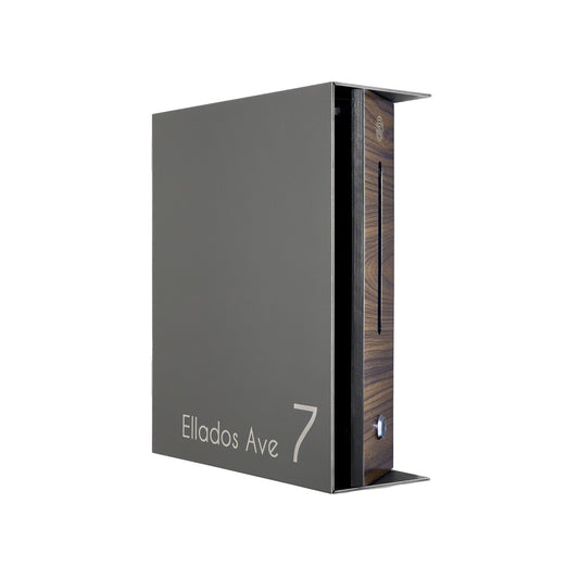 Metallic Gray/Walnut Minimalist Mailbox - Modern Stylish Letterbox for Home and Office with Engraved Personalization