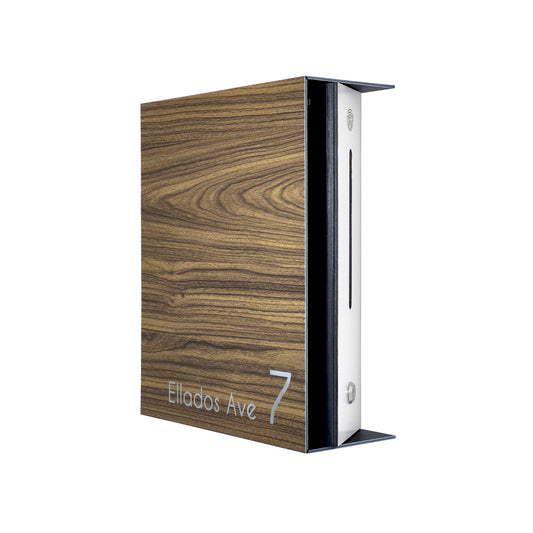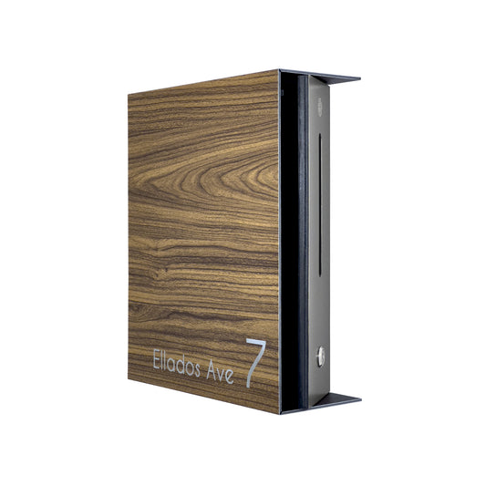 Walnut Minimalist Mailbox - Modern Stylish Letterbox for Home and Office with Engraved Personalization
