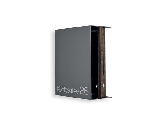 Small Walnut/Metallic Gray Minimalist Mailbox - Modern Stylish Letterbox for Home and Office with Engraved Personalization