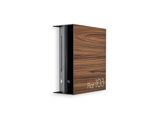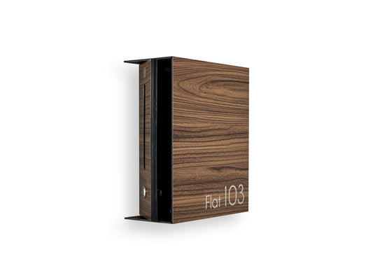 Small Walnut Minimalist Mailbox - Modern Stylish Letterbox for Home and Office with Engraved Personalization