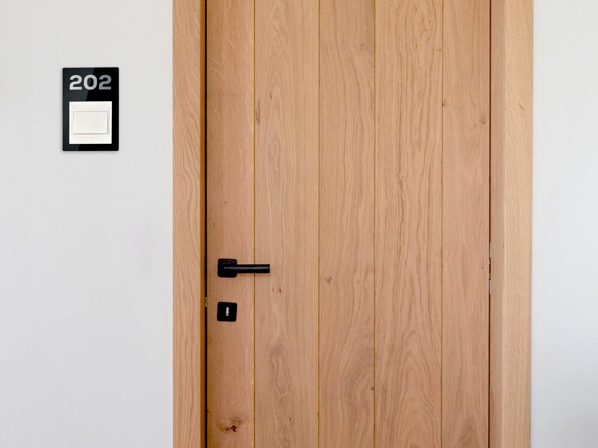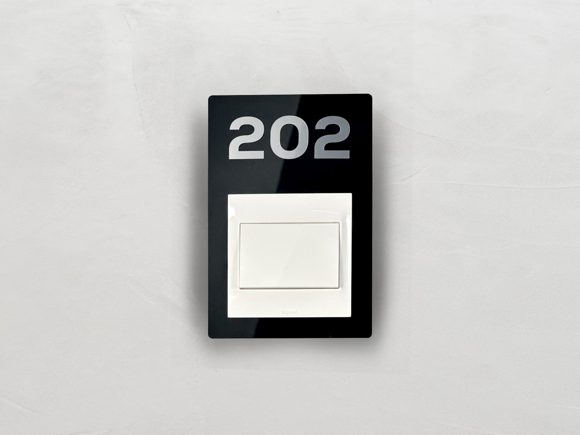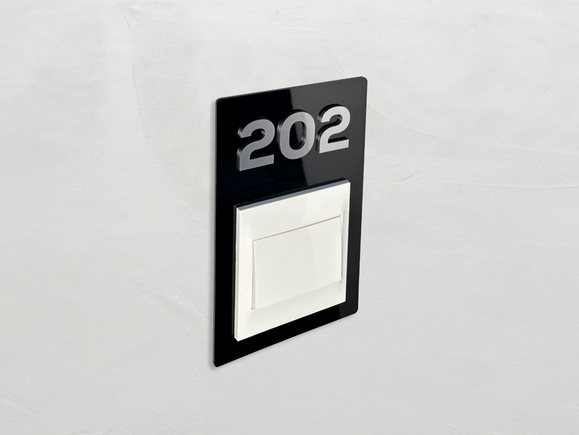 Modern Black/Silver Switch Frame with Door Number - Personalized Apartment Number Sign - Room Number Signage