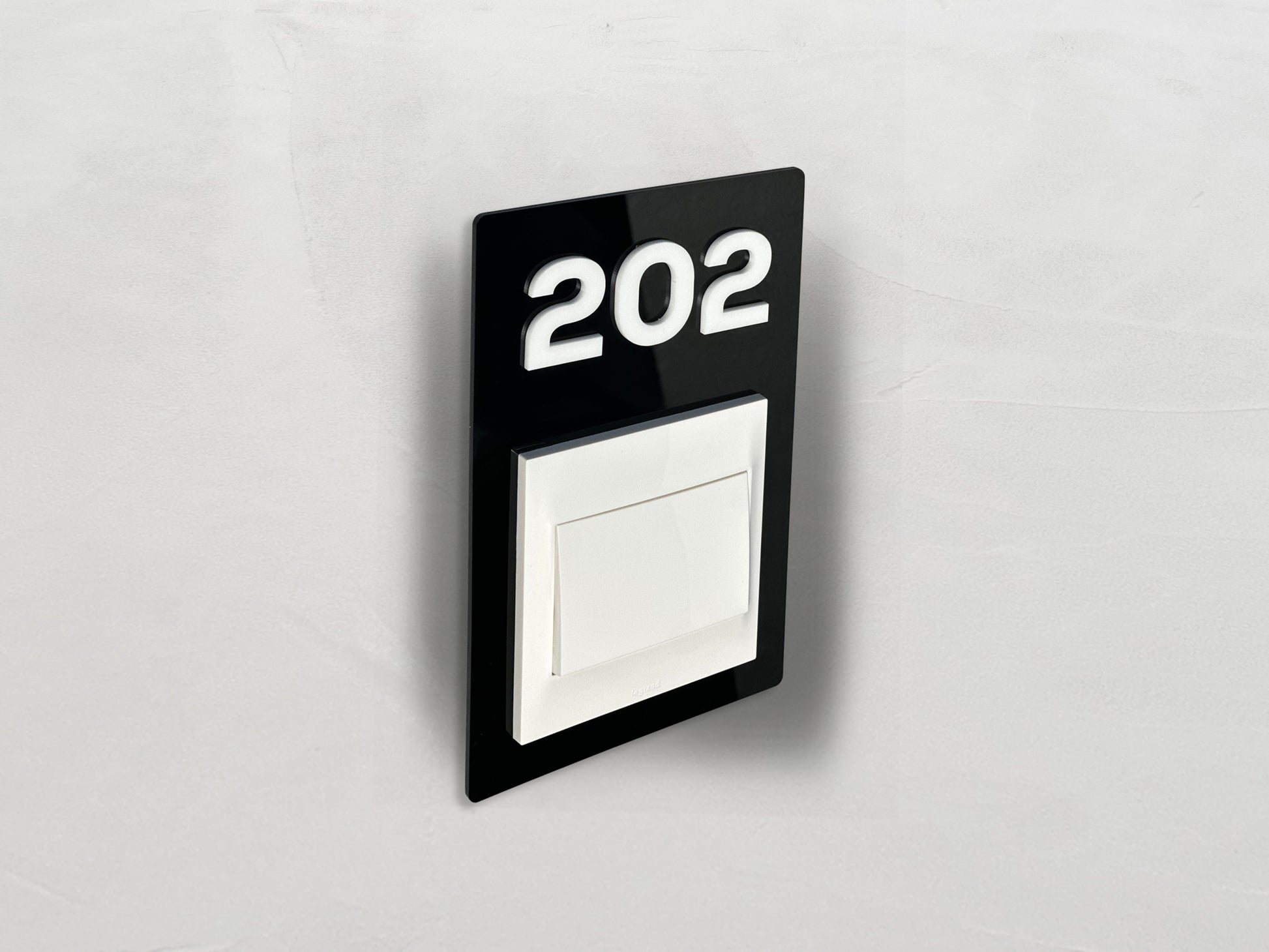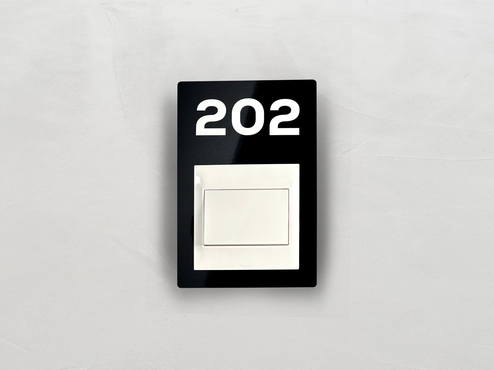 Modern Black/White Switch Frame with Door Number - Personalized Apartment Number Sign - Room Number Signage