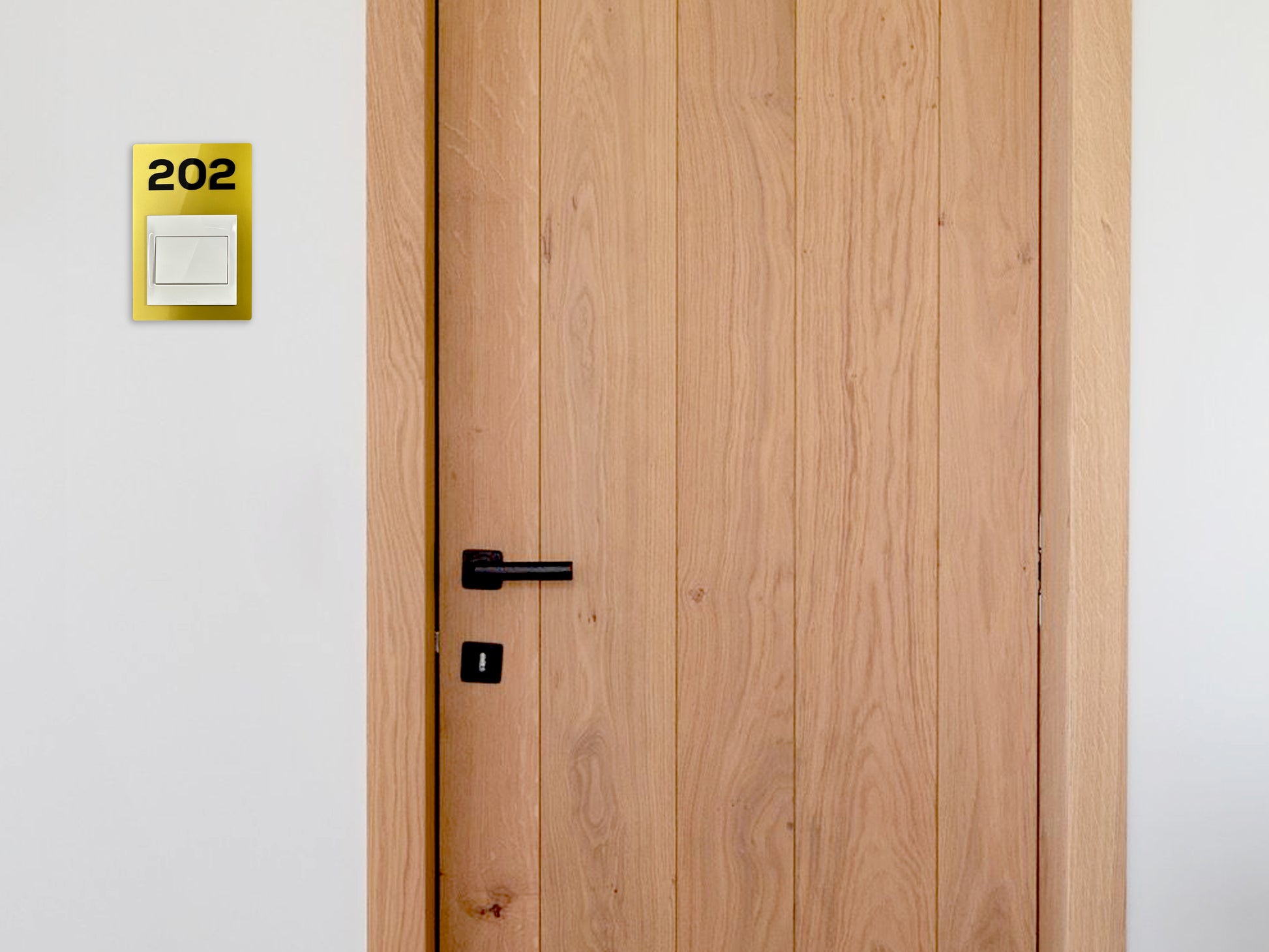 Modern Gold/Black Switch Frame with Door Number - Personalized Apartment Number Sign - Room Number Signage