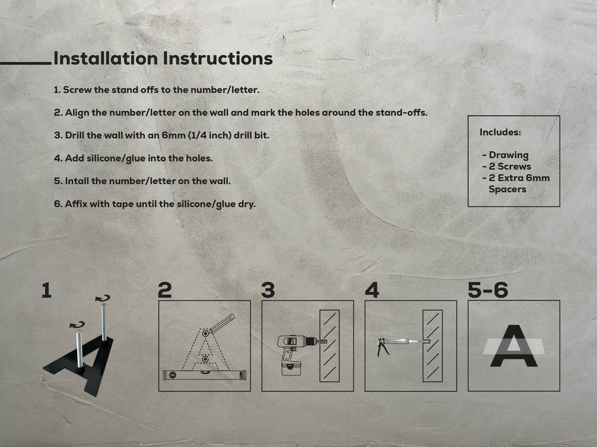 5. Install the number/letter on the wall.