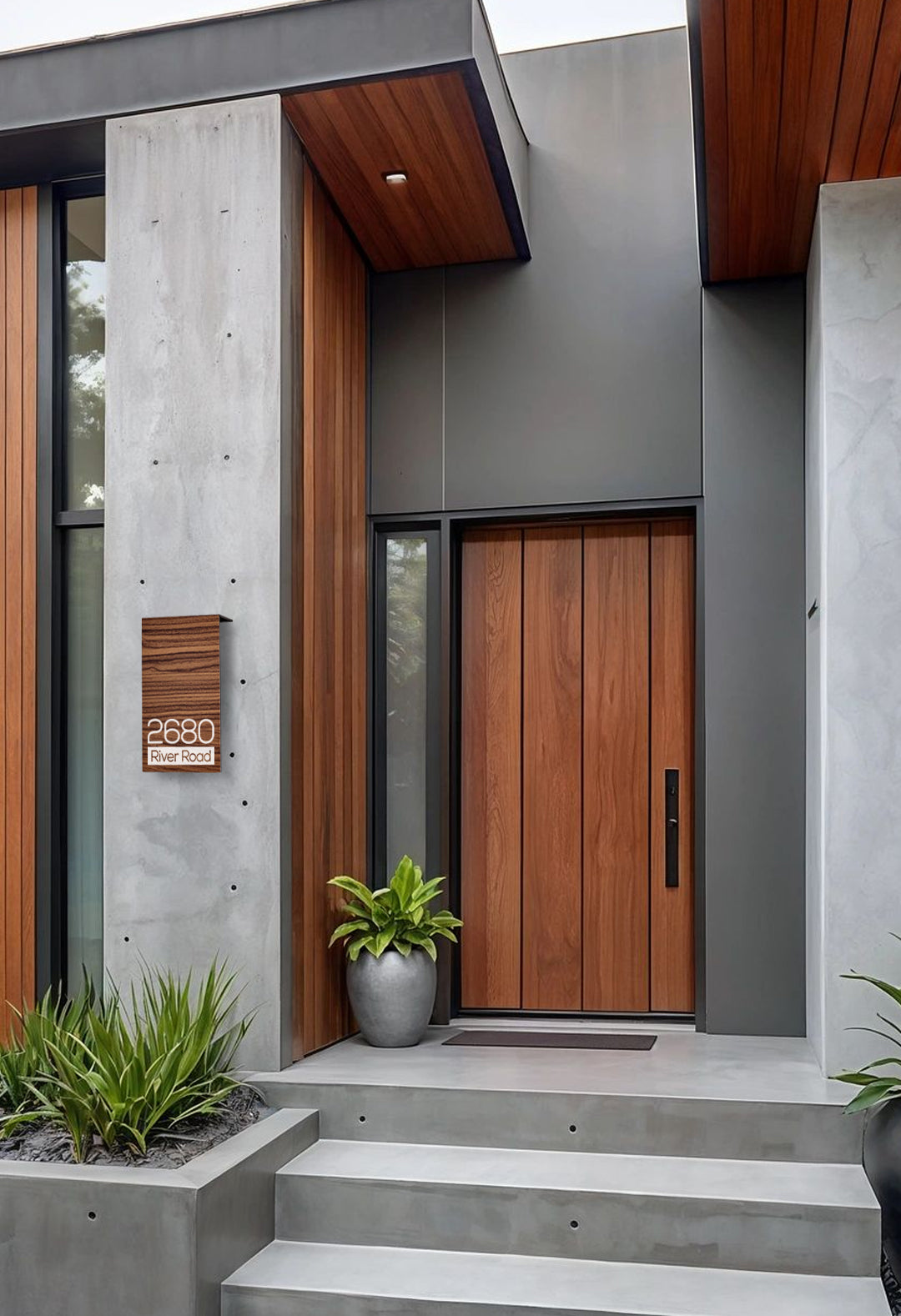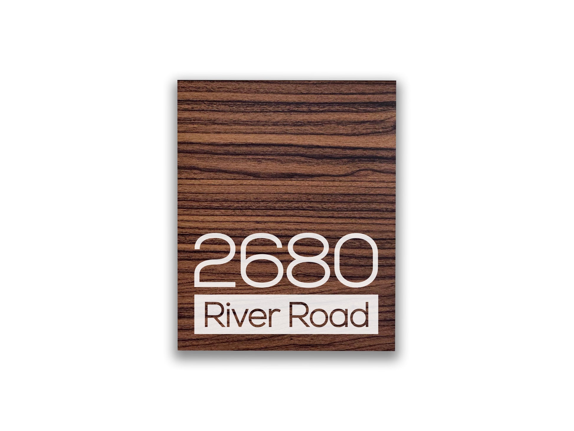 Modern Walnut Aluminium Address Sign - Personalized House Number Sign - Laser Engraved Street Name Plaque