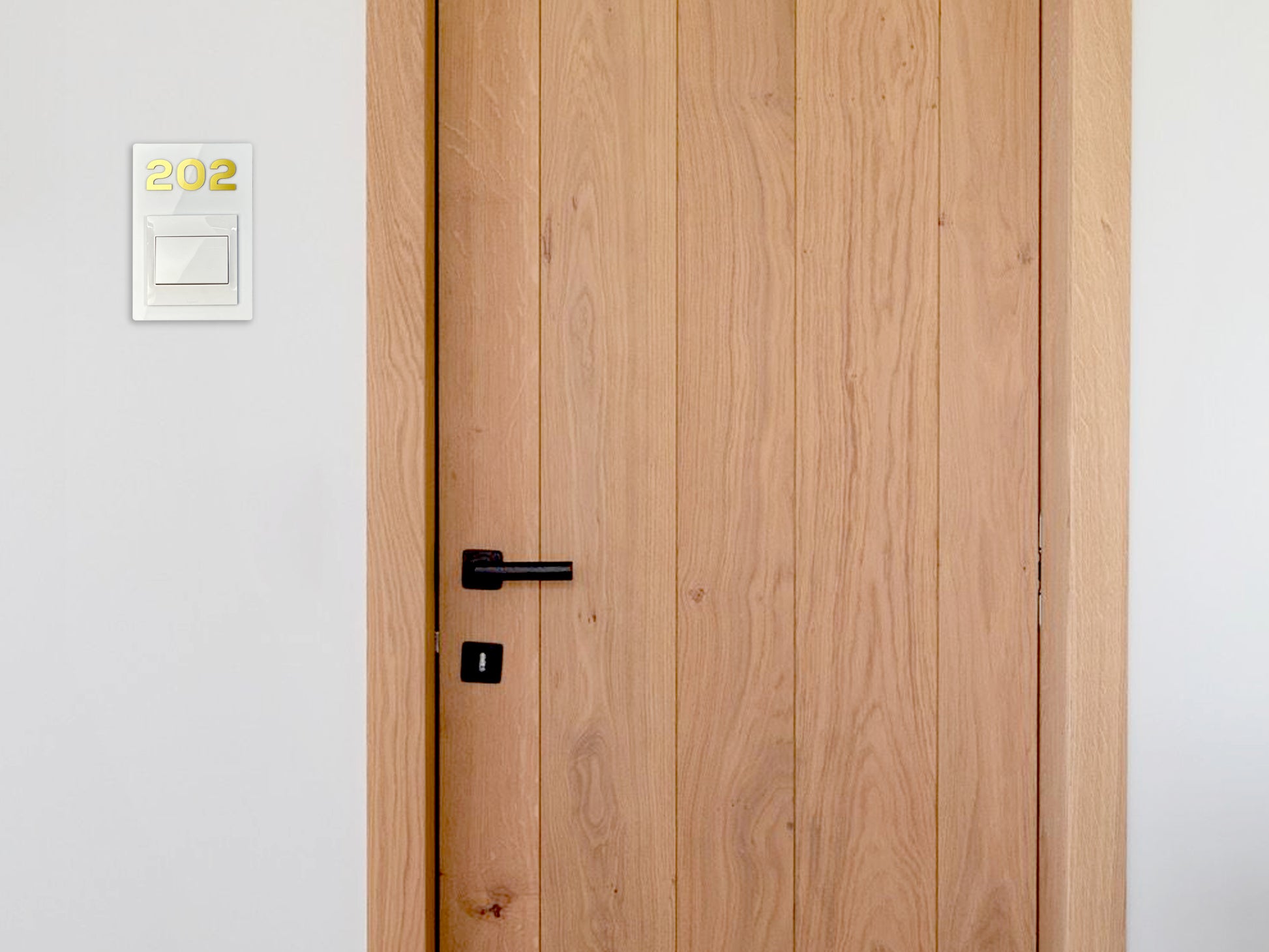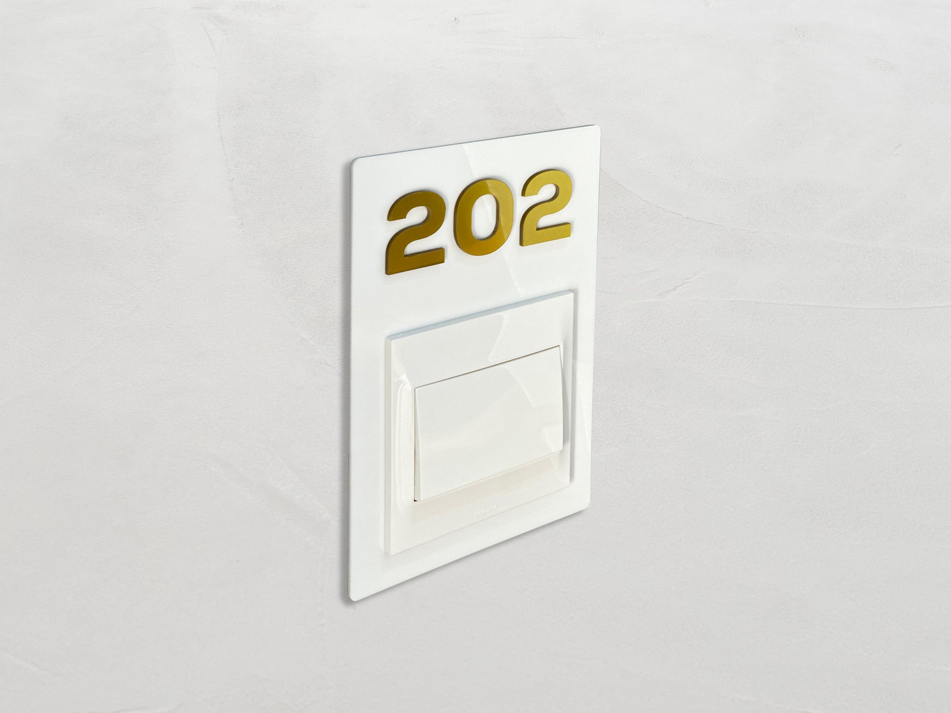 Modern White/Gold Switch Frame with Door Number - Personalized Apartment Number Sign - Room Number Signage