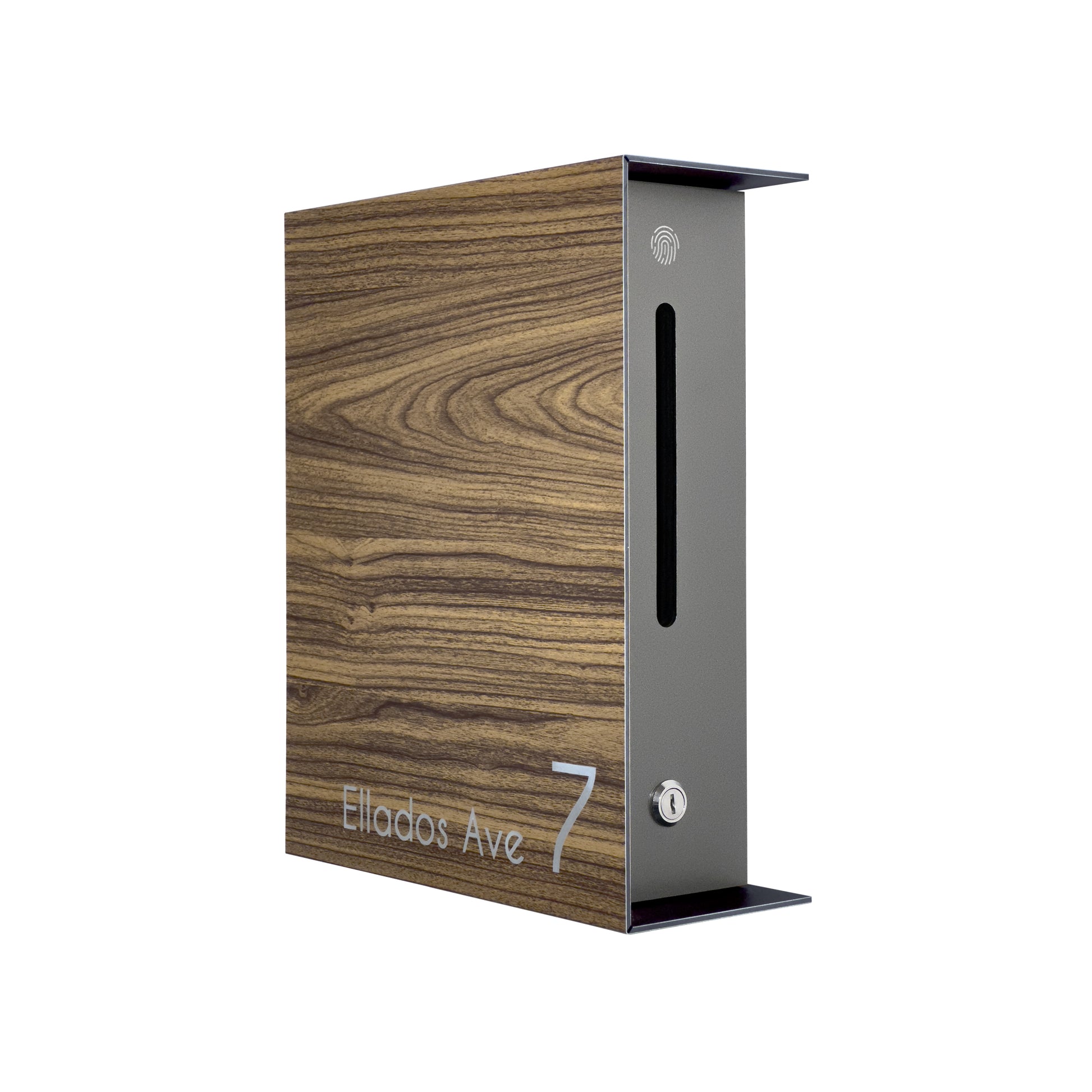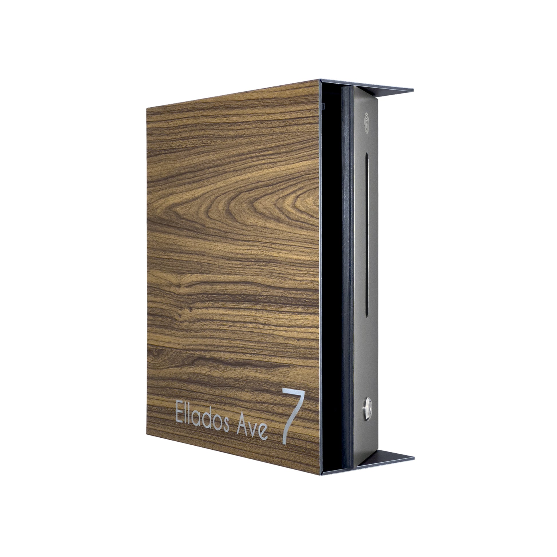Walnut/Metallic Gray Minimalist Mailbox - Modern Stylish Letterbox for Home and Office with Engraved Personalization